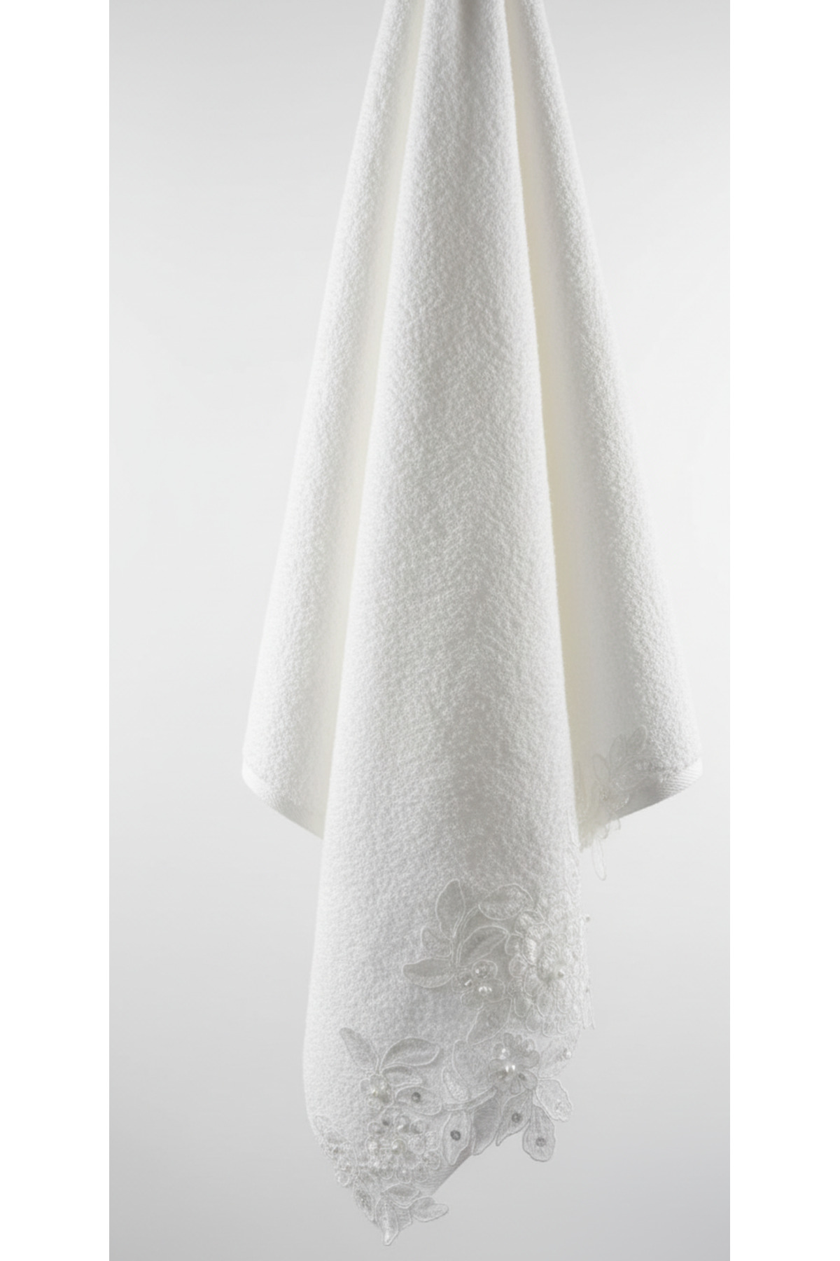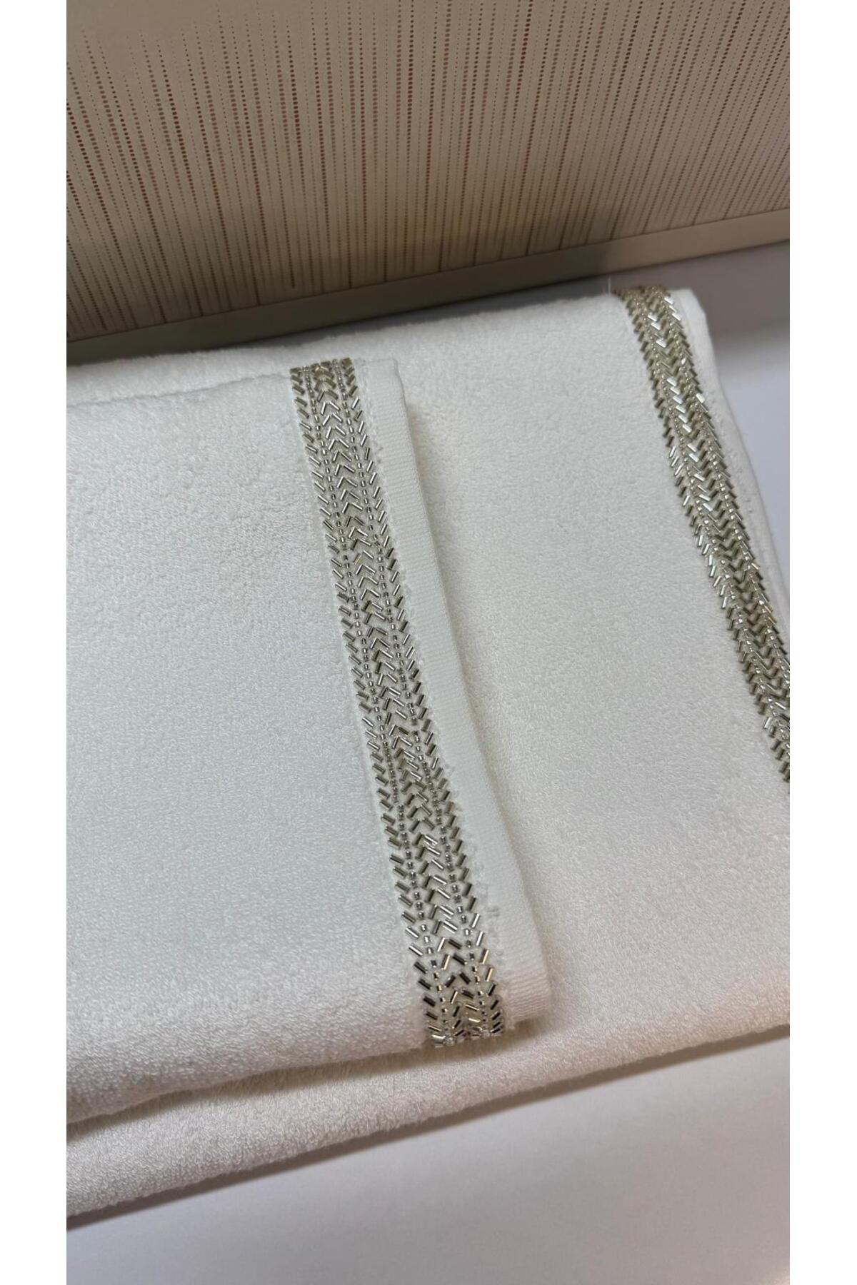 50x90 cm Beyaz İncili Fransız Dantelli %100 Pamuk 500gr Lüks El & Yüz Havlusu