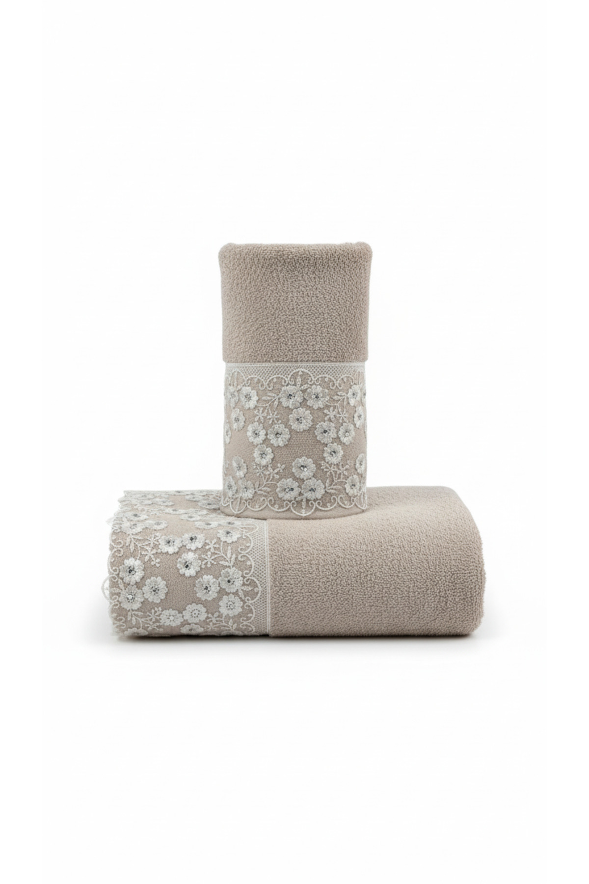 Zen Dantel Detaylı 2'li Havlu Seti (50x90 - 90x150 cm)
